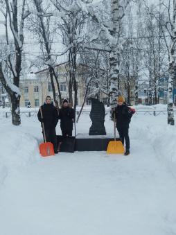 Для участников волонтерского отряда «Энергия добра» Районного центра внешкольной работы с. Выльгорт зима - это время особой заботы. Иванов Александр, Оплеснин Данил, Лесников Артем знают: мемориал погибшим землякам не должен исчезать под снежным покровом